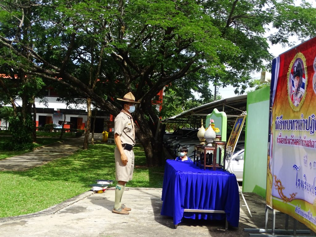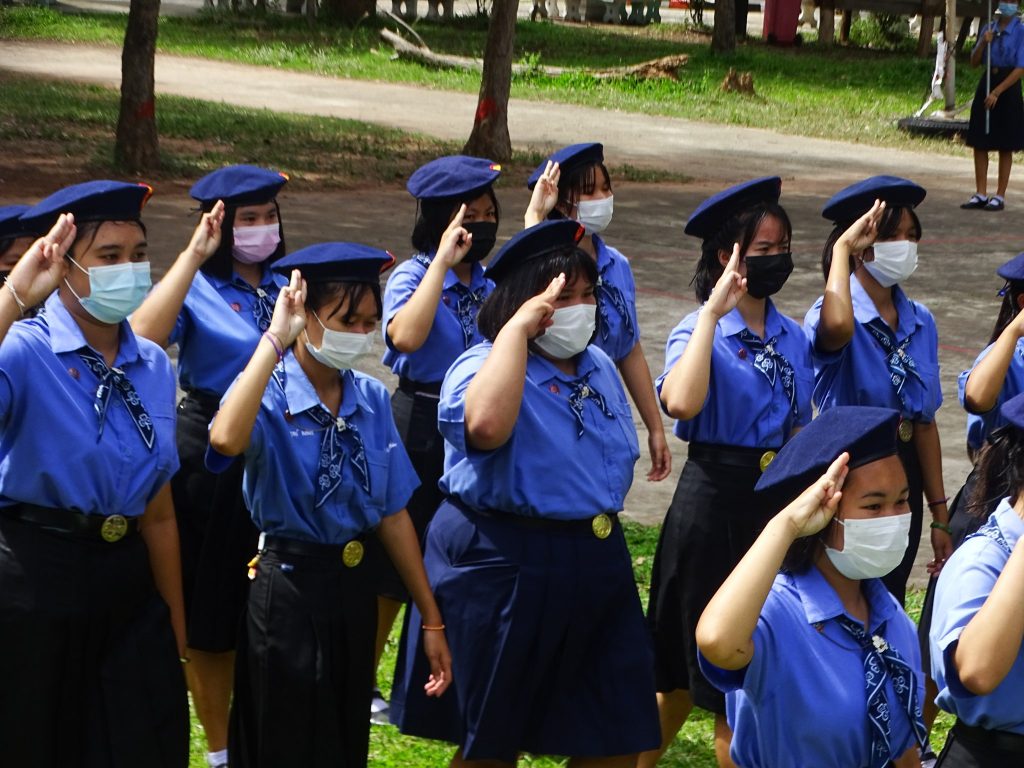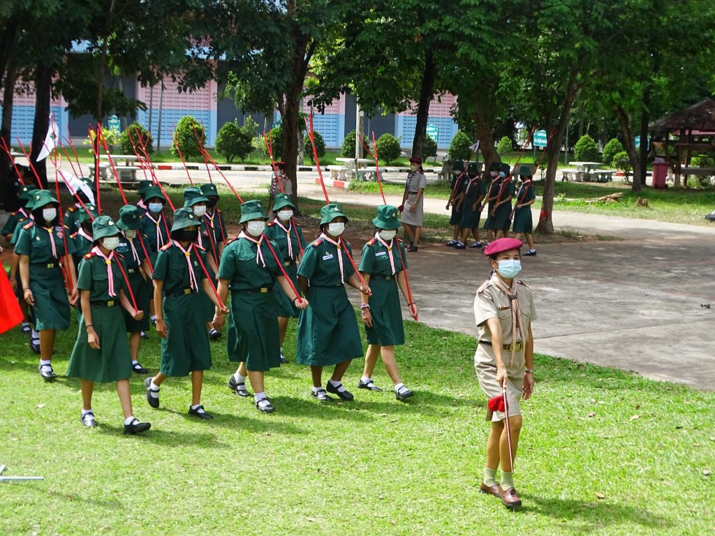 พิธีทวนคำปฏิญาณและสวนสนาม ลูกเสือ เนตรนารี ผู้บำเพ็ญประโยชน์ เนื่องในวัคล้ายวันสถาปนาคณะลูกเสือแห่งชาติ