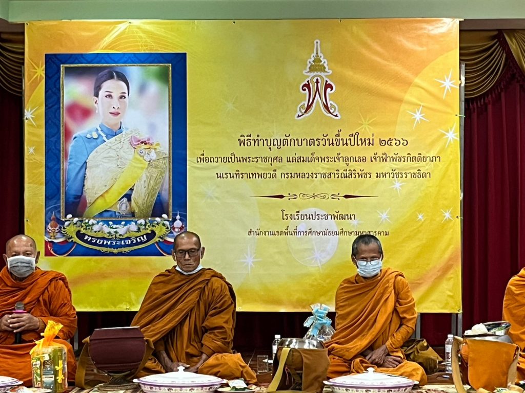 พิธีทำบุญตักบาตรวันขึ้นปีใหม่ 2566 เพื่อถวายเป็นพระราชกุศล แด่สมเด็จพระเจ้าลูกเธอ เจ้าฟ้าพัชรกิติยาภา นเรนทิราเทพยวดี กรมหลวงราชสาริณีสิริพัชร มหาวัชรราชธิดา