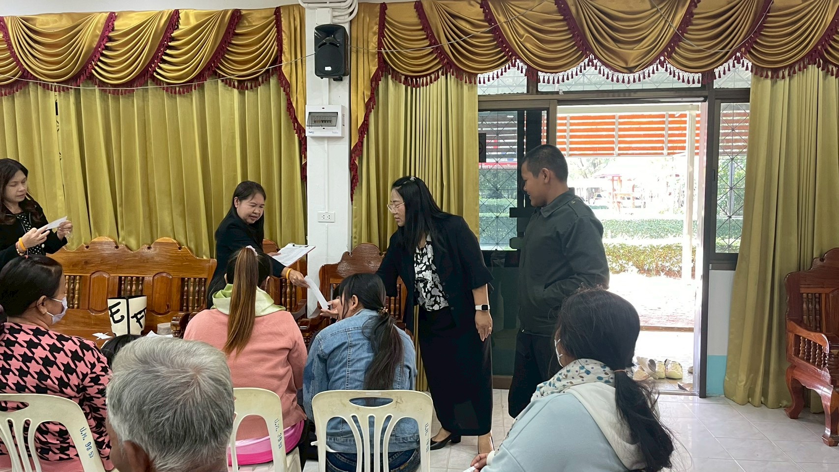 ร่วมกันปรึกษาหารือกับผู้ปกครองและนักเรียน ในการกำหนดแนวทางการแก้ไขปัญหา ณ ห้องโสตทัศนศึกษา โรงเรียนประชาพัฒนา
