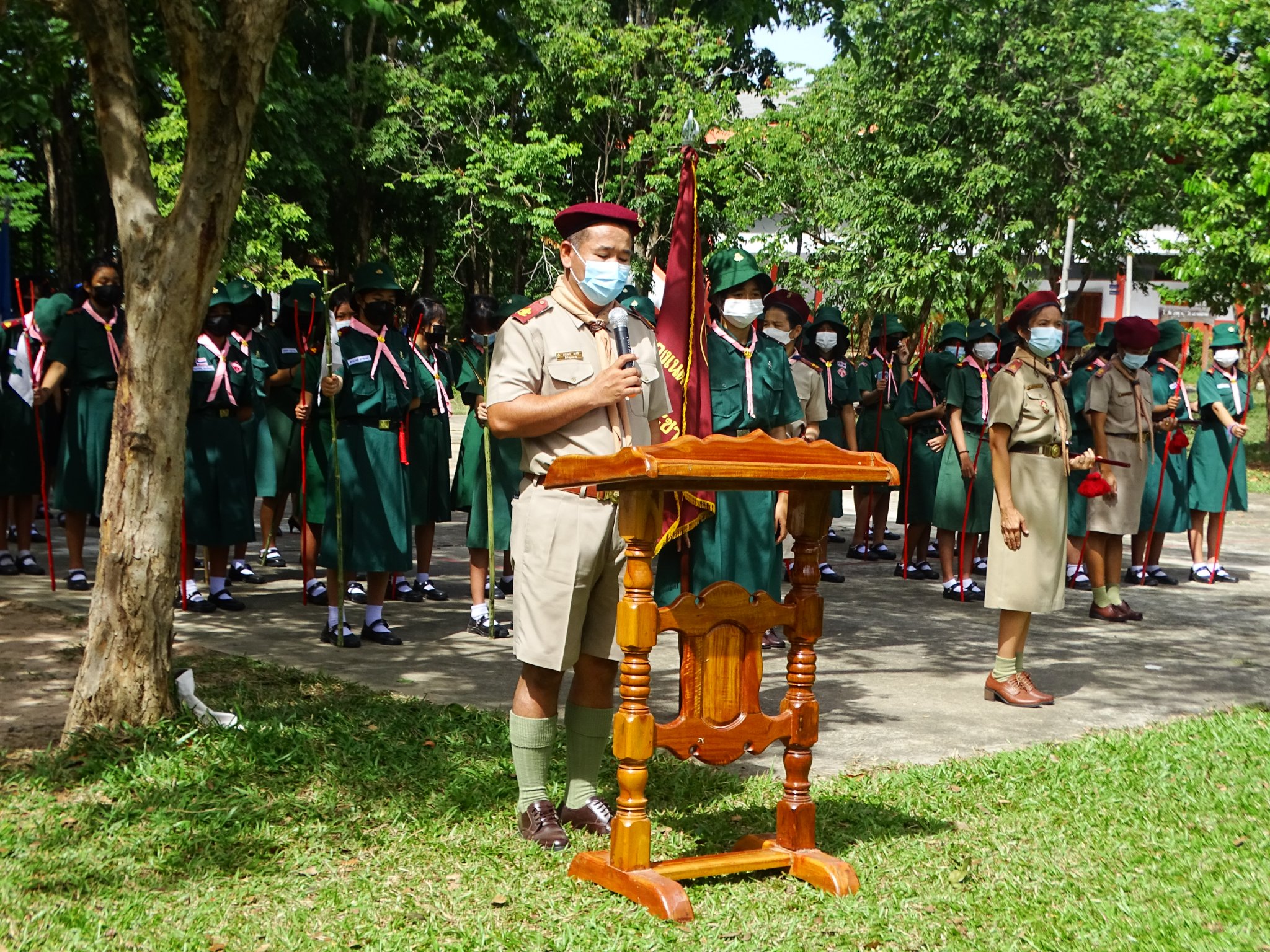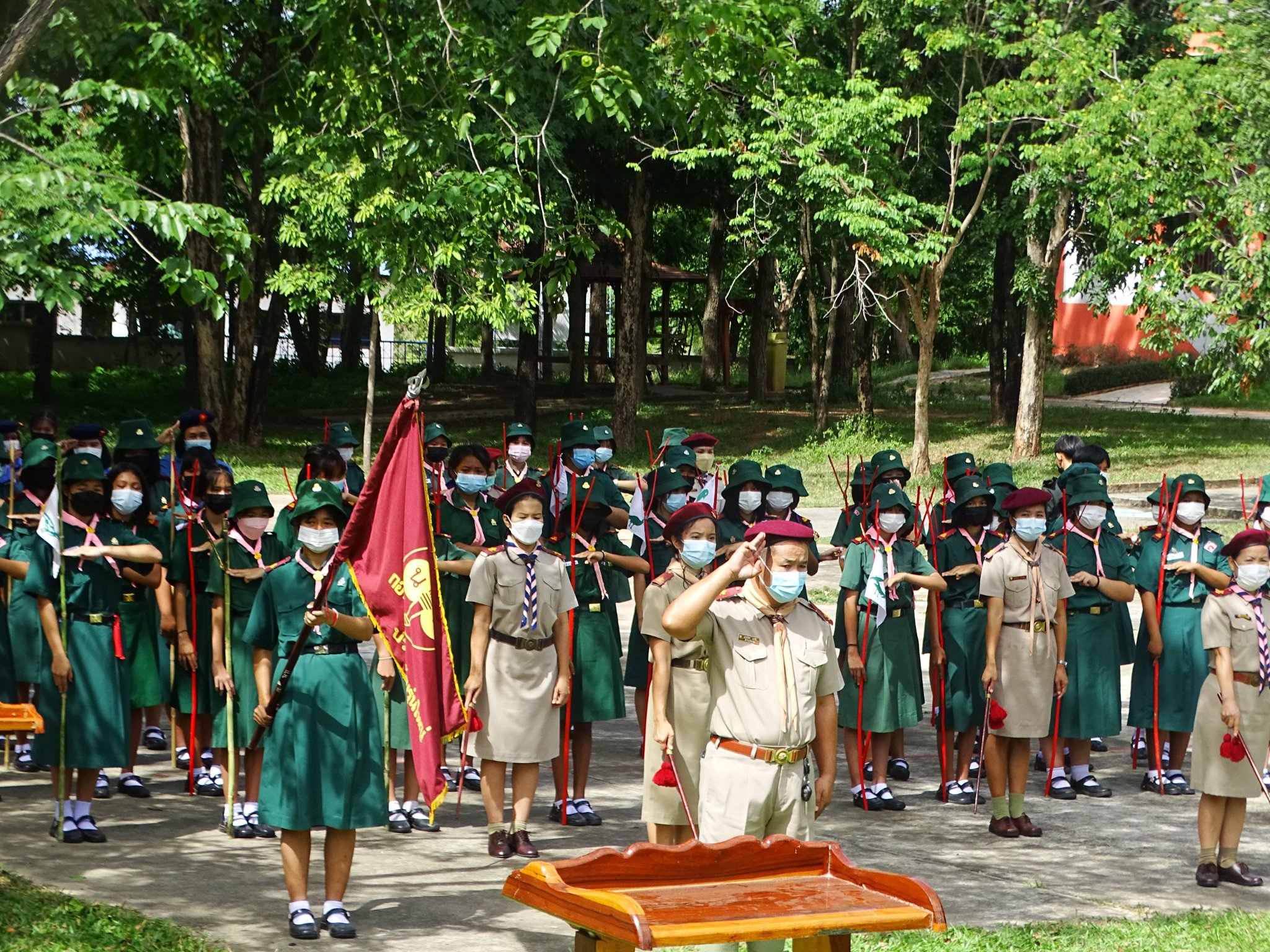 พิธีทวนคำปฏิญาณและสวนสนาม ลูกเสือ เนตรนารี ผู้บำเพ็ญประโยชน์ เนื่องในวัคล้ายวันสถาปนาคณะลูกเสือแห่งชาติ