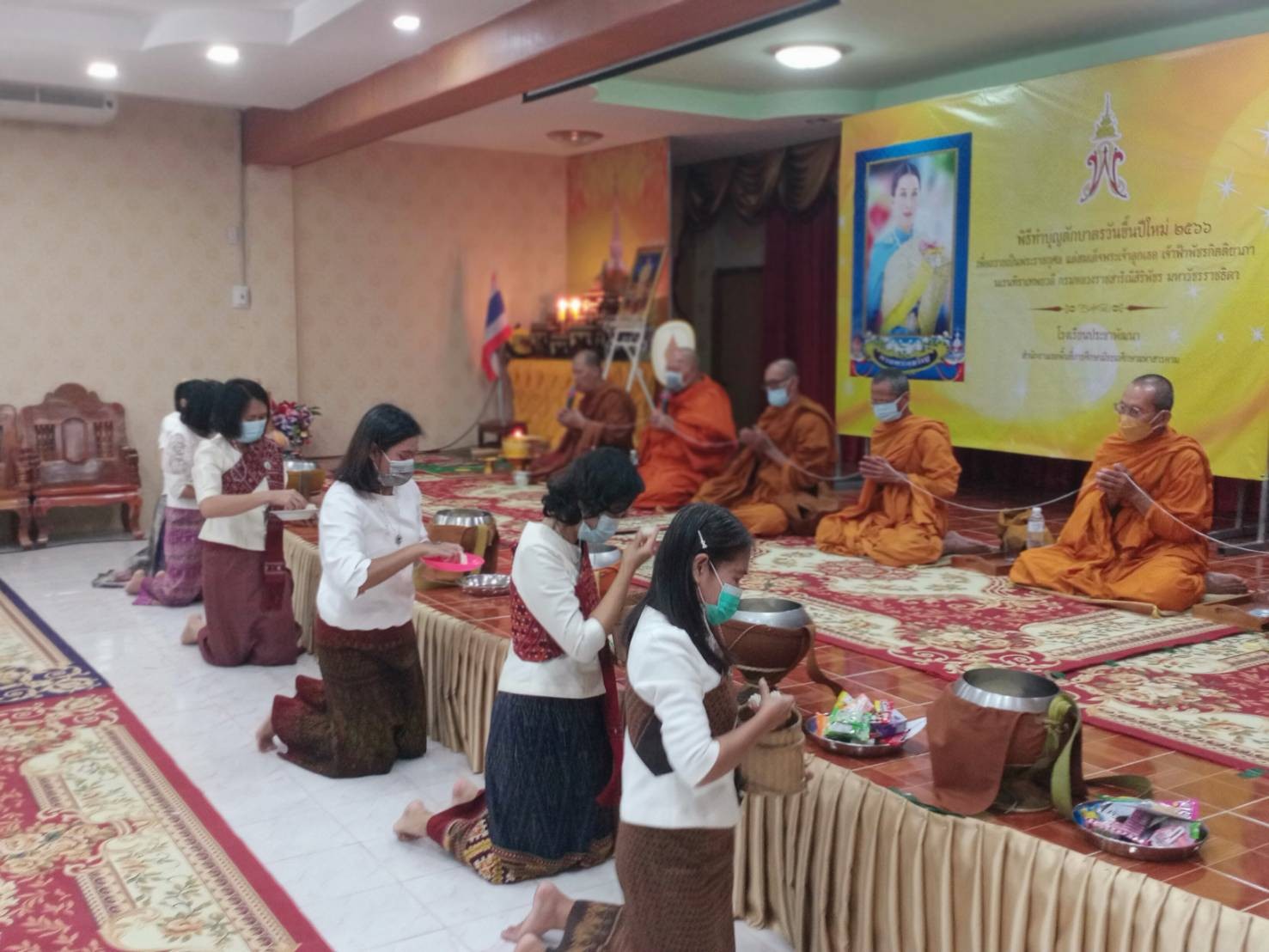 พิธีทำบุญตักบาตรวันขึ้นปีใหม่ 2566 เพื่อถวายเป็นพระราชกุศล แด่สมเด็จพระเจ้าลูกเธอ เจ้าฟ้าพัชรกิติยาภา นเรนทิราเทพยวดี กรมหลวงราชสาริณีสิริพัชร มหาวัชรราชธิดา