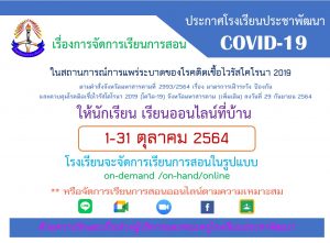ประกาศโรงเรียนประชาพัฒนานักเรียน เรียนออนไลน์ตั้งแต่ วันที่ 1-31 ตุลาคม 2564 (ประกาศวันที่ 30 กันยายน 2564)