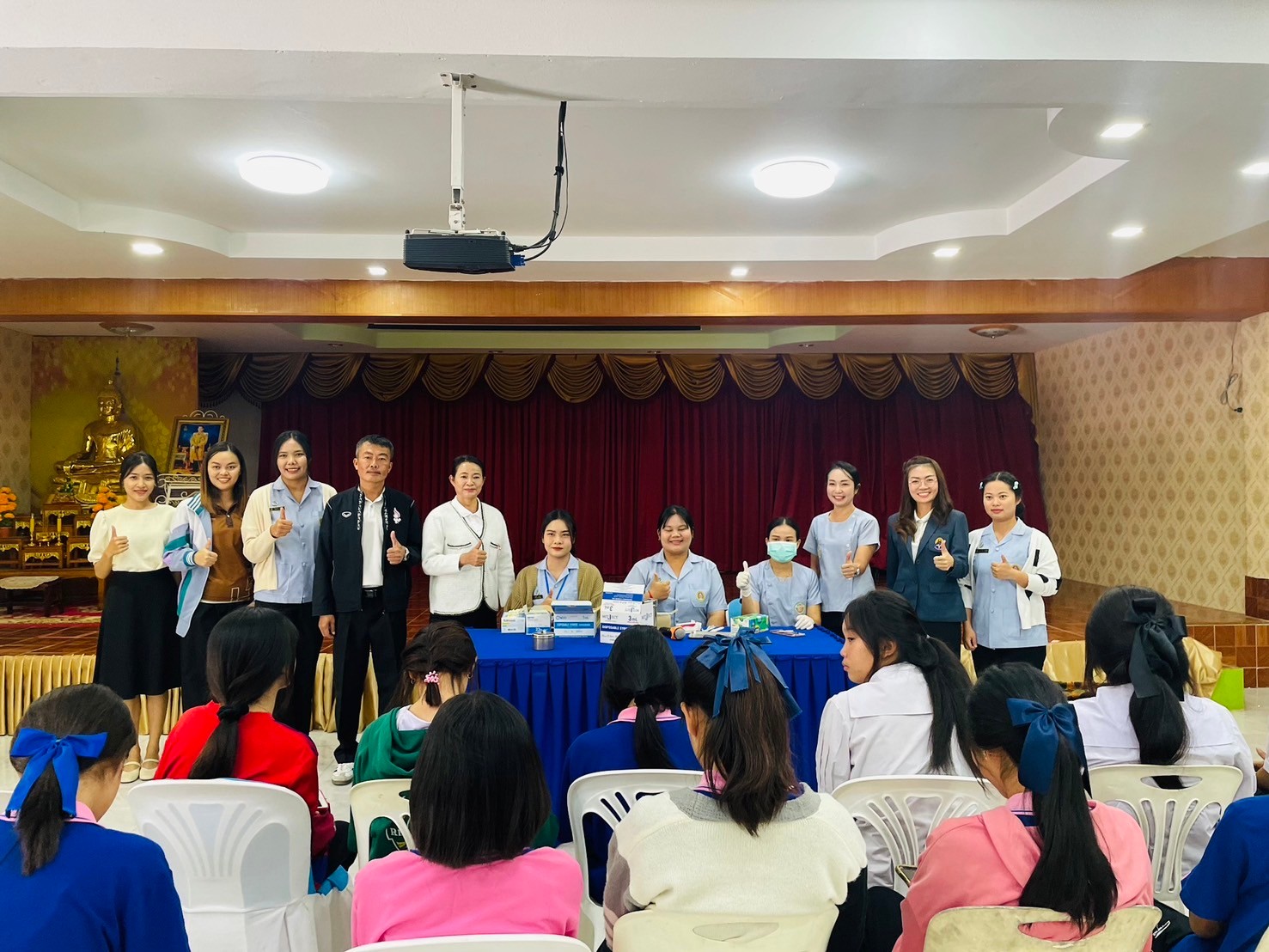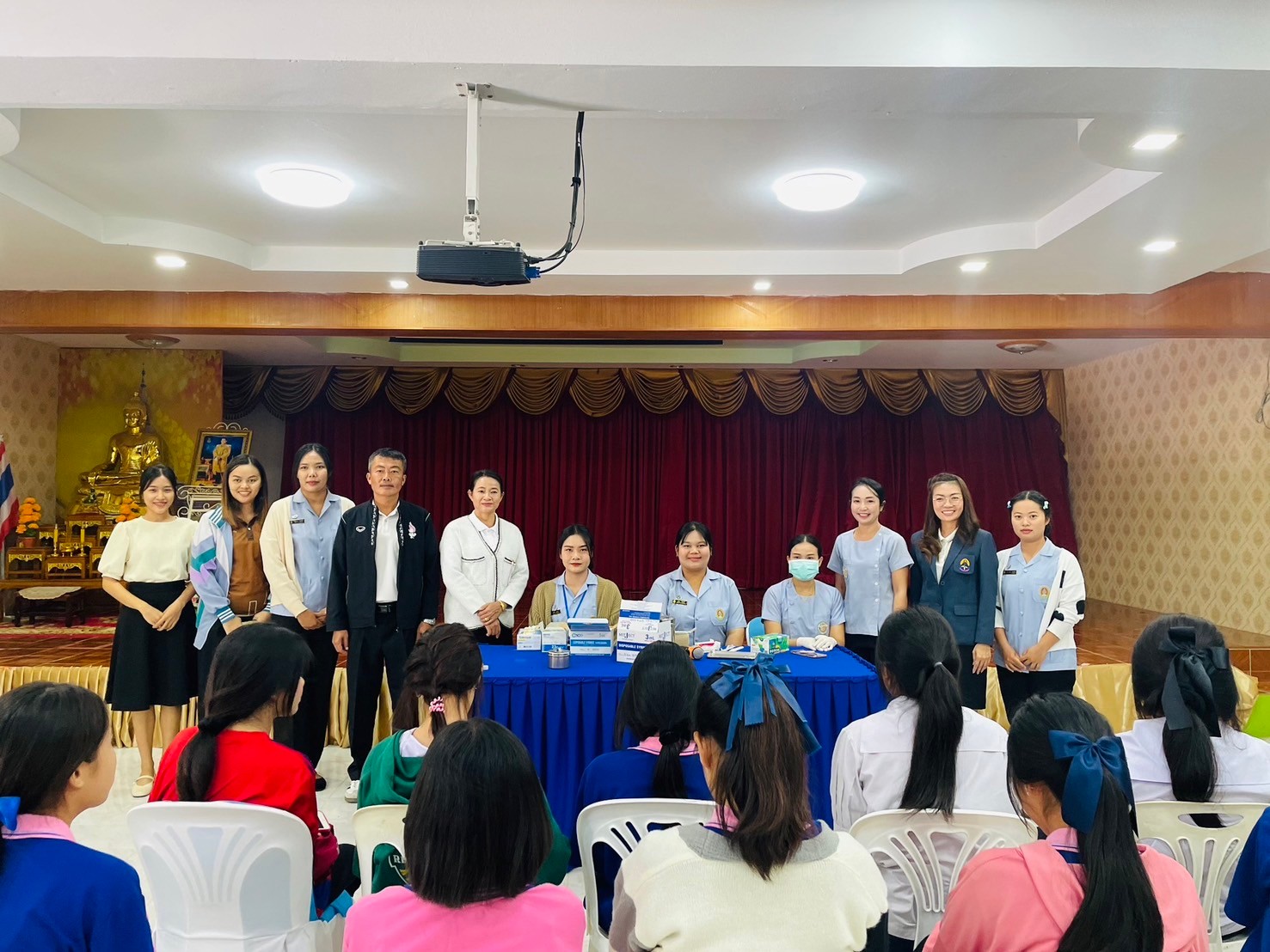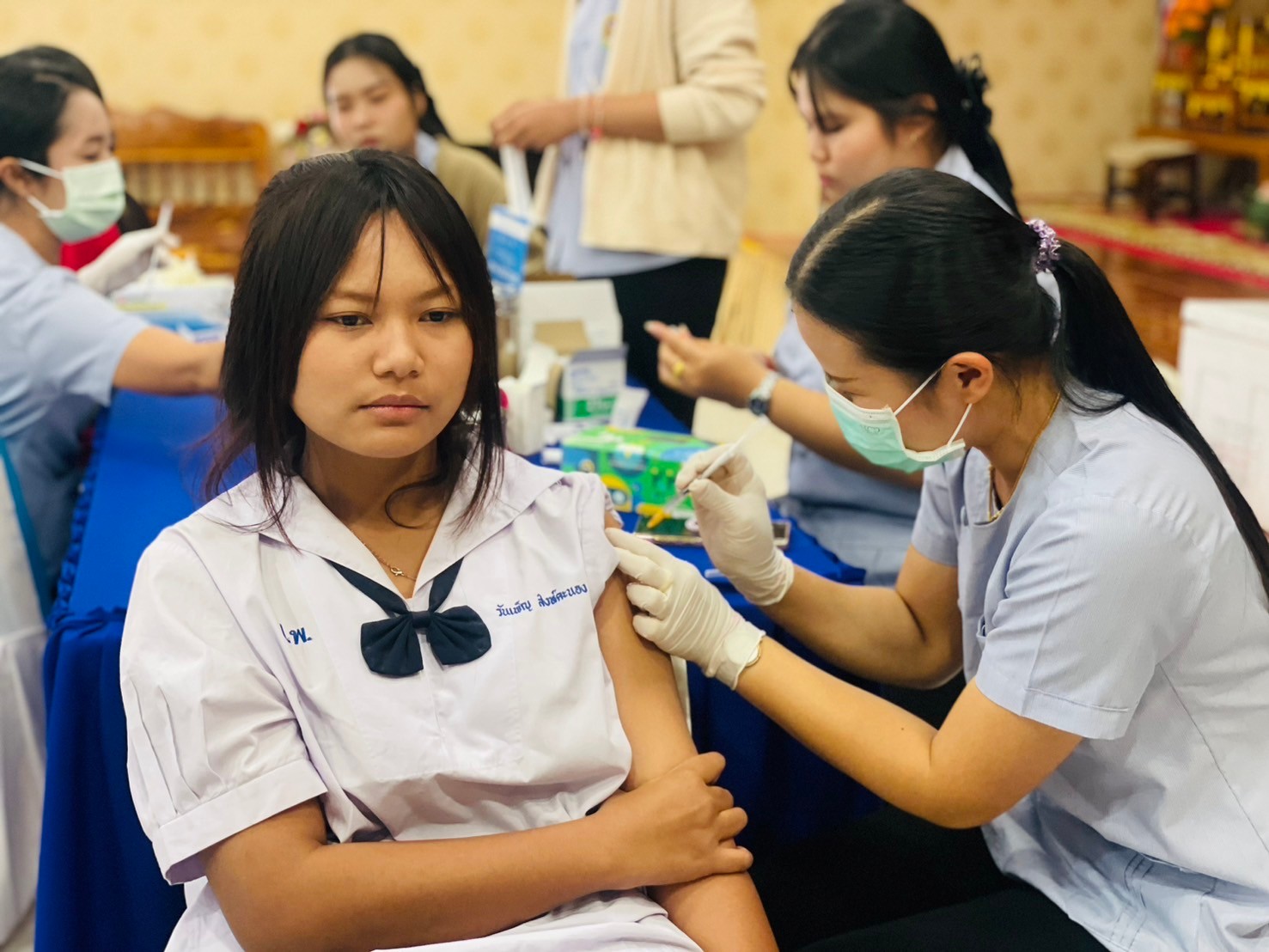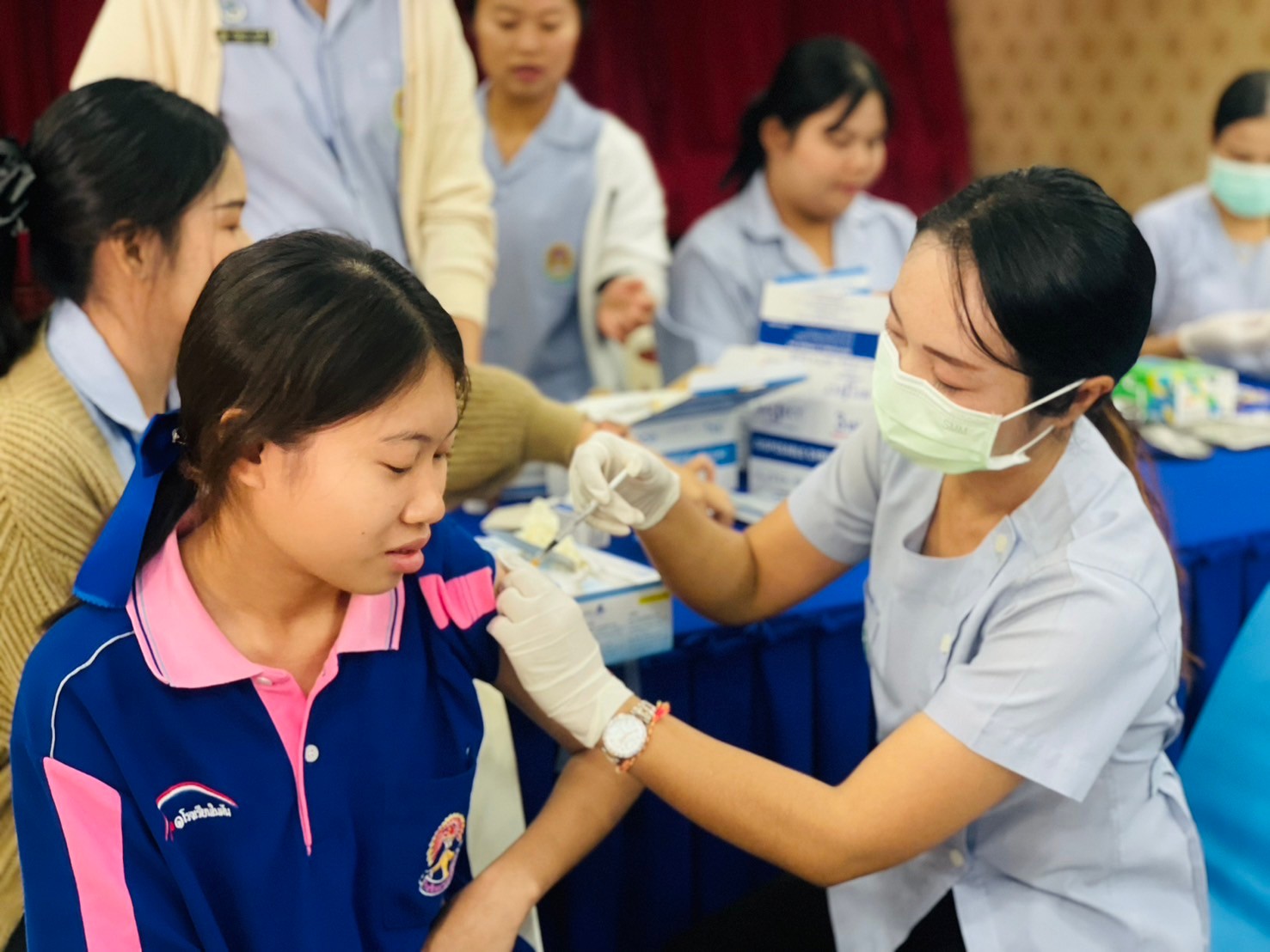 วันที่ 17-มกราคม 2567 นายจักรินทร์ สวาศรี ผู้อำนวยการโรงเรียน มอบหมายให้นางสาวรัตน์ชนัญญา เกตุมาลา รองผู้อำนวยการโรงเรียน พร้อมด้วยครูผู้มีส่วนเกี่ยวข้องร่วมกำกับดูแลนักเรียนหญิงชั้นมัธยมศึกษาปีที่ 2-3 เข้ารับการฉีดวัคซีนป้องกันการติดเชื้อไว้รัส HPV โดยได้รับความอนุเคาระห์จาก โรงพยาบาลส่งเสริมสุขภาพประจำตำบลประชาอาสา ณ ห้องโสตทัศนศึกษา โรงเรียนประชาพัฒนา โรงเรียนประชาพัฒนาขอขอบพระคุณมา ณ โอกาสนี้